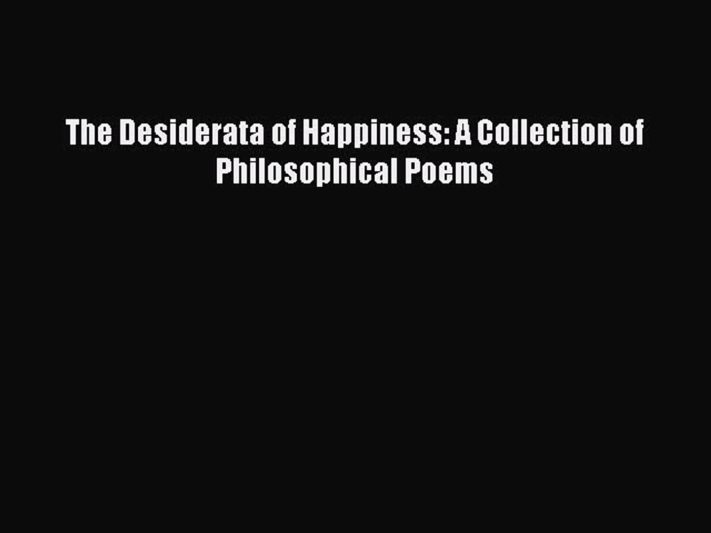 Download The Desiderata Of Happiness A Collection Of Philosophical Poems Free Books
